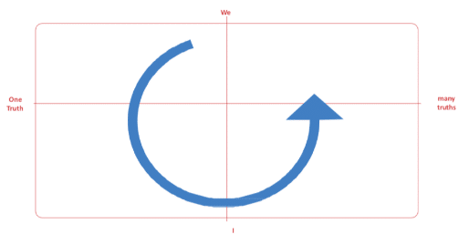 The radical shift from First-Tier to Second-Tier (Yellow, Turquoise) is a move from one-truth to many-truths. Second-Tier believes each of the first-tier stages has some grain of truth and accepts the world as an amalgam of many partially-true perspectives and not a my-truth-is-the-only-truth perspective. It is a radical shift in thinking and requires a frightening degree of open-mindedness.